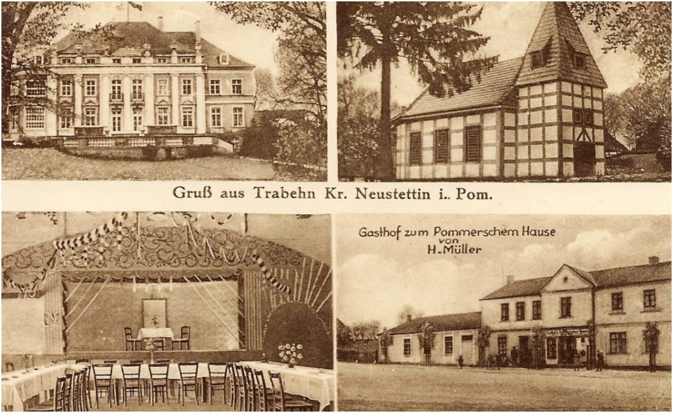 W centralnej części wsi znajdowała się gospoda „Dom Pomorski”. W jej wnętrzu mieściła się duża, piękna sala taneczna ze sceną. Zarówno przed wojną, jak i po jej zakończeniu odbywało się tam wiele imprez okolicznościowych. Miejsce to zawsze tętniło życiem.