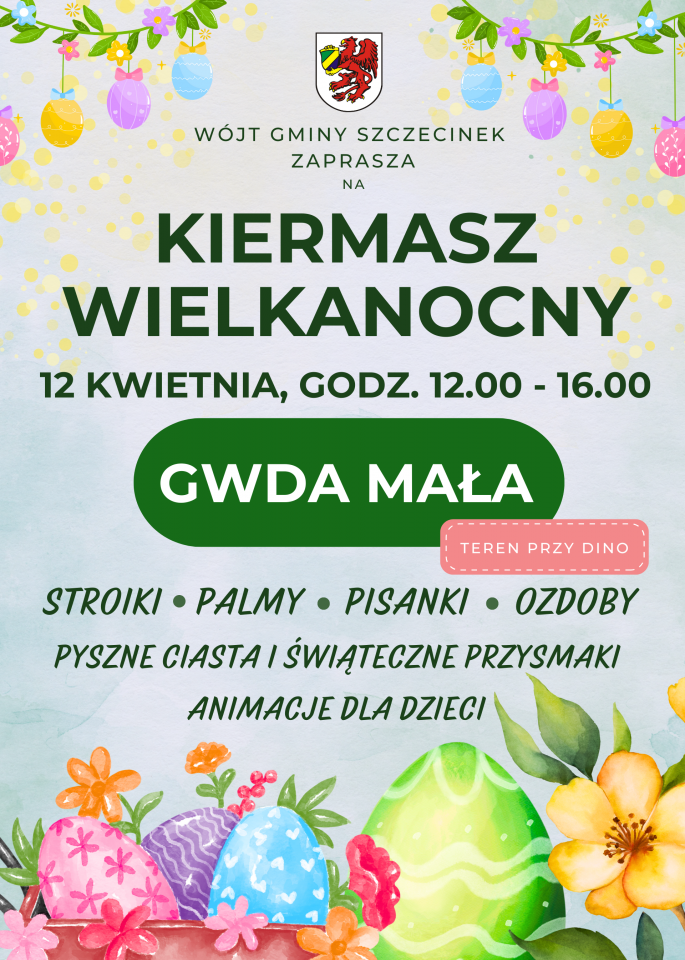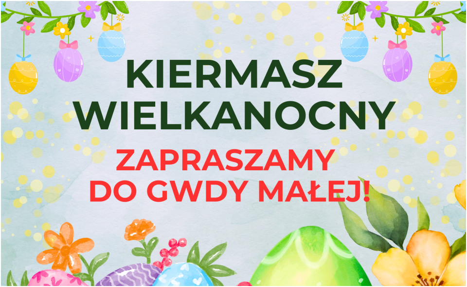 Wójt Gminy Szczecinek serdecznie zaprasza wszystkich Mieszkańców oraz gości na wyjątkowy Kiermasz Wielkanocny. Tak jak w ubiegłym roku zapraszamy wszystkich do Gwdy Małej!